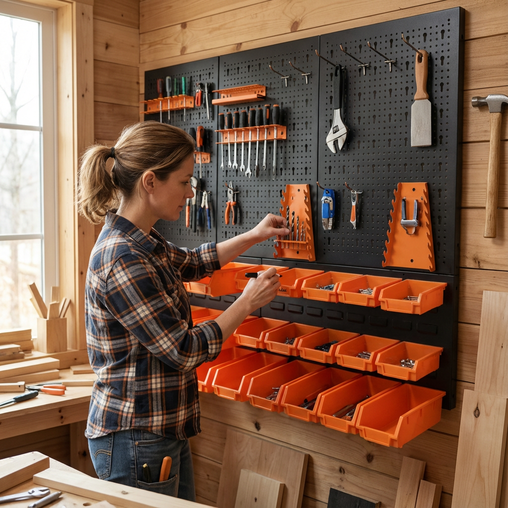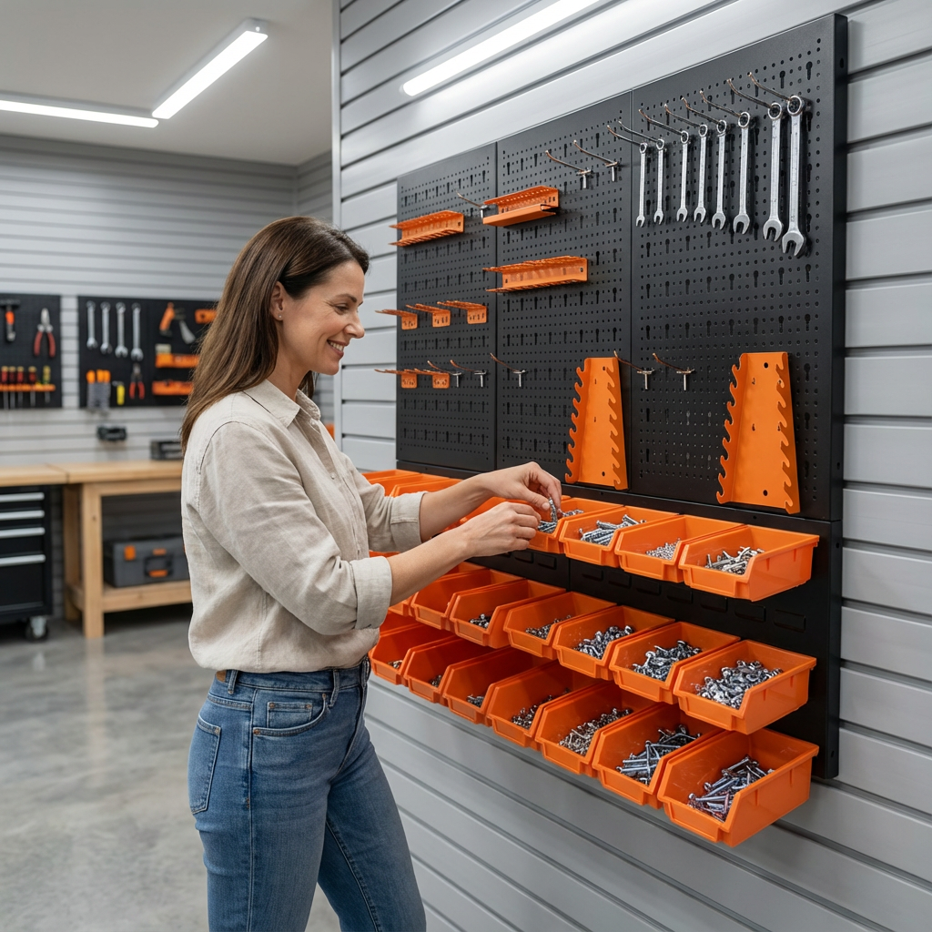Personalizzazione dello spazio di archiviazione: include una varietà di ganci, staffe, ripiani e scatole organizer per personalizzare il pannello in base alle tue esigenze specifiche.