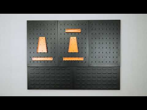 Kit di 5 pannelli forati e fessurati + ganci e staffe + contenitori portaoggetti - HPTH02