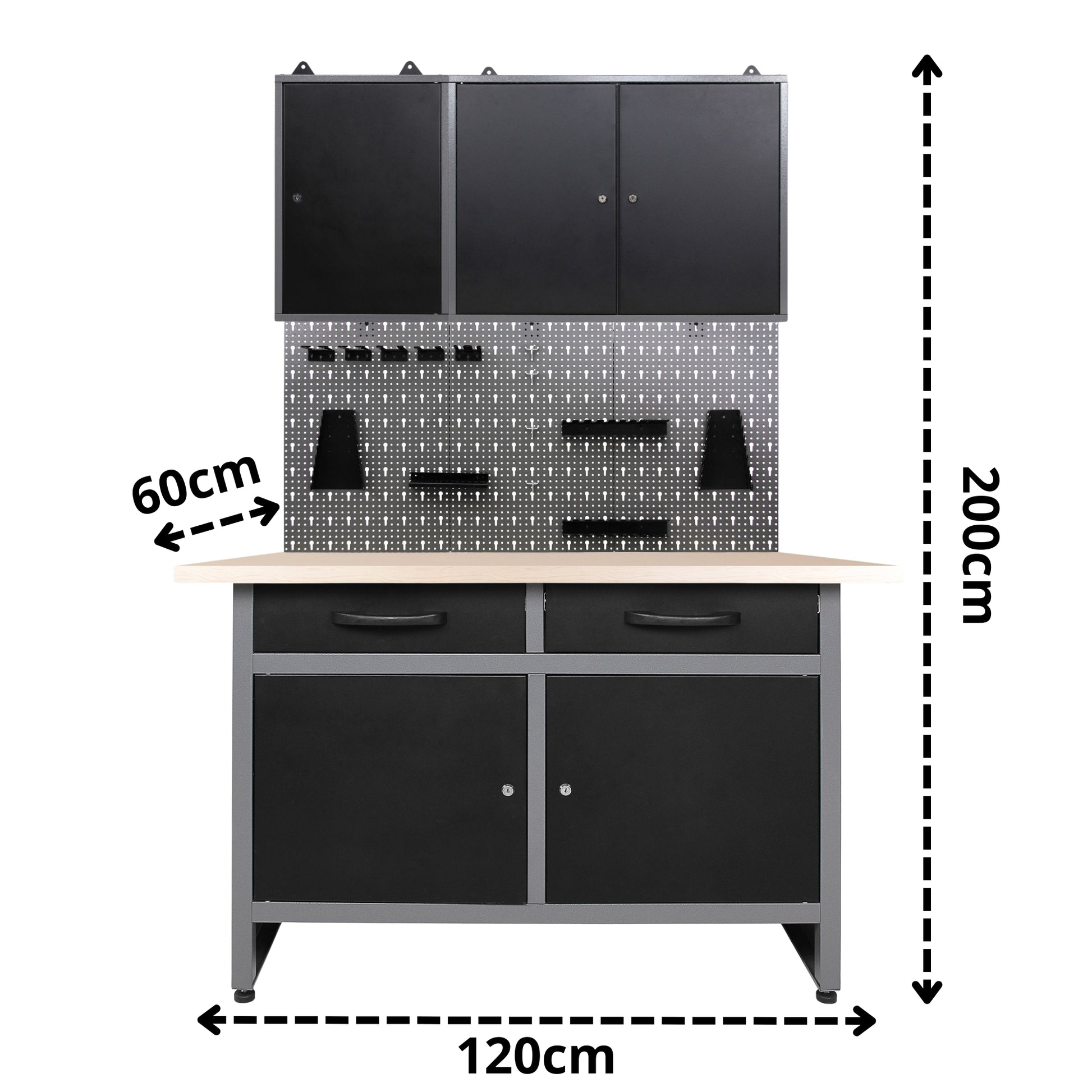 Questa configurazione distribuita e segmentata dell'armadio consente una maggiore flessibilità di assemblaggio e un'organizzazione più precisa, su misura per le diverse dimensioni e utilizzi dei vostri utensili.
