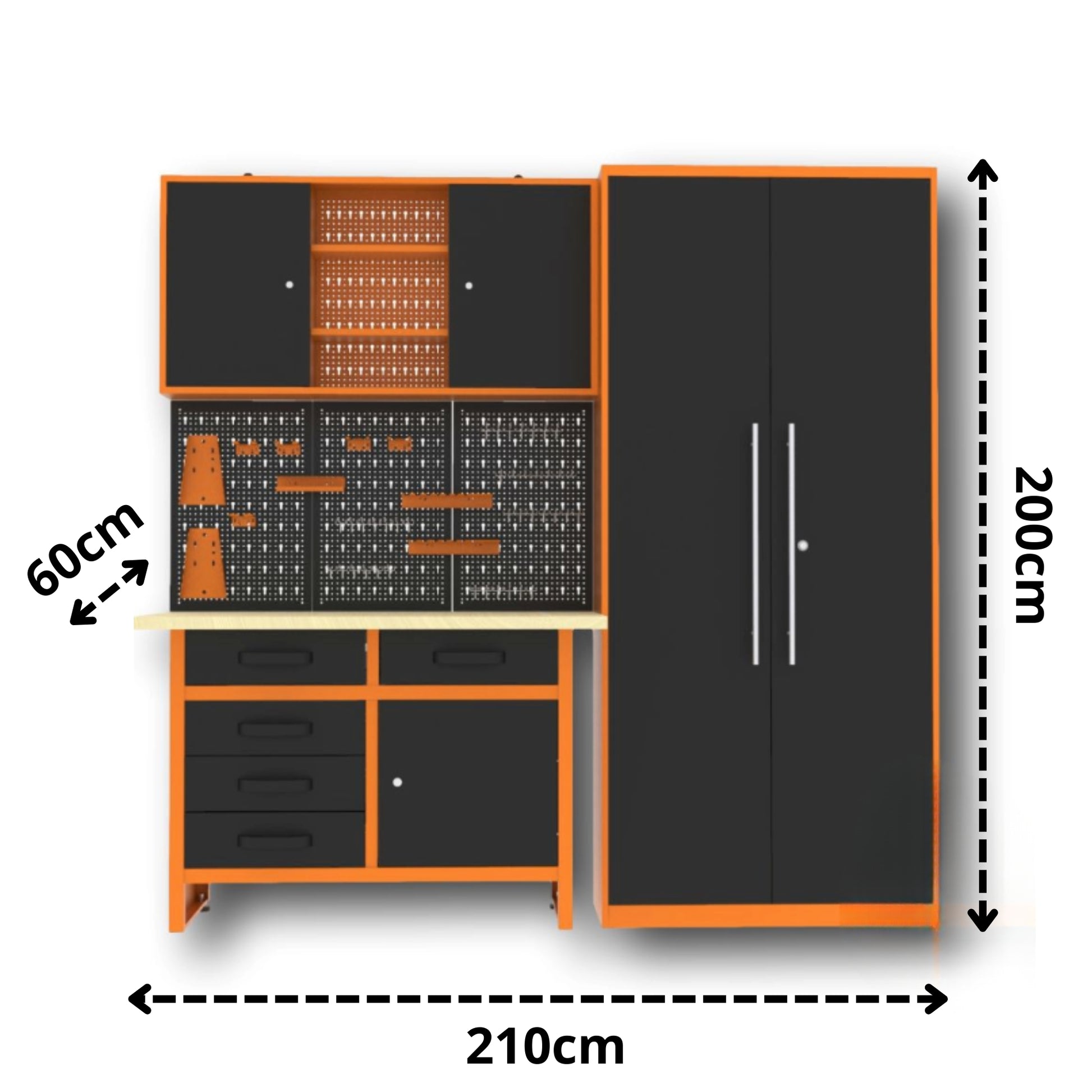 Kit fai da te King Pack 1 – Banco da lavoro con 5 cassetti, mobiletto a muro e mobiletto metallico alto 2 metri per un'organizzazione totale in garage o officina