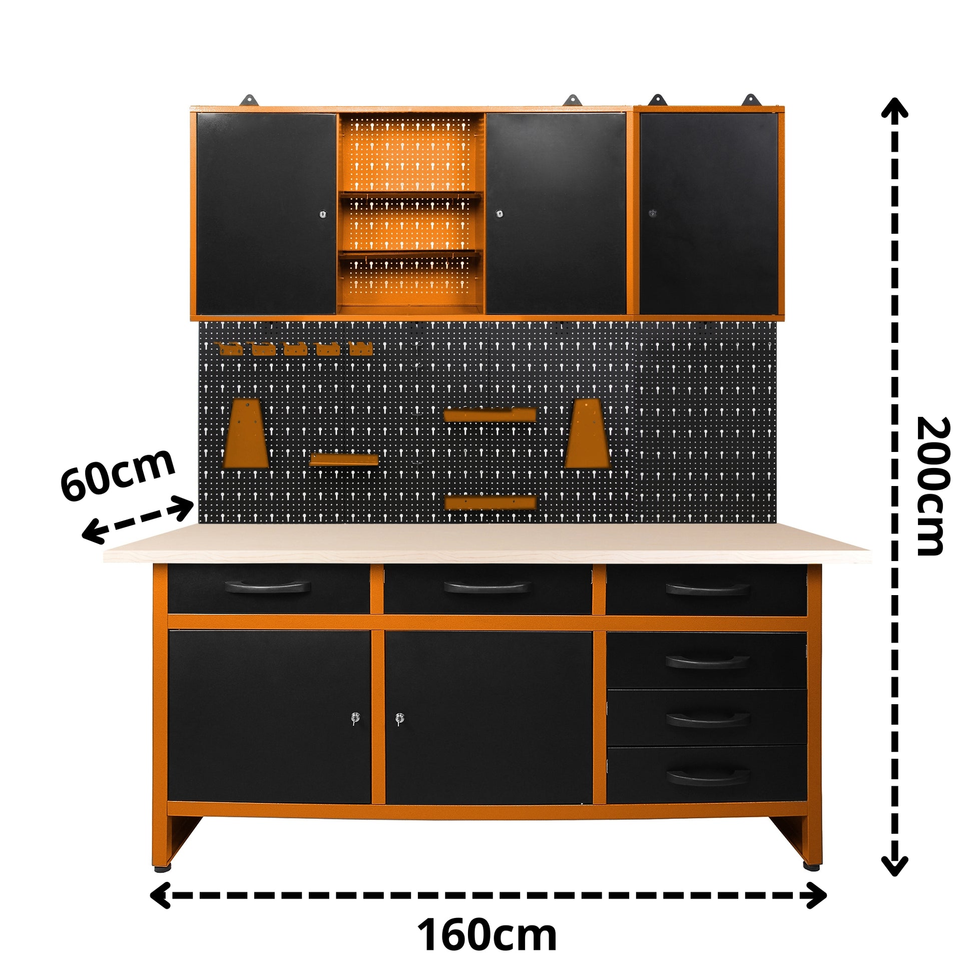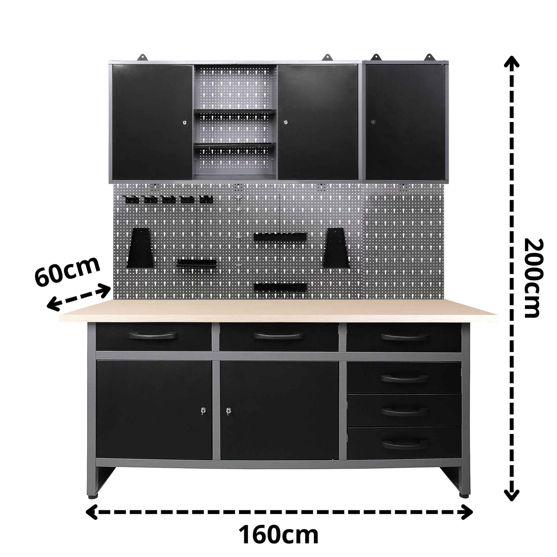 🛠️ Banco da lavoro con sei cassetti e due mobili base, ideale per organizzare utensili manuali, utensili elettrici, ferramenta e tutto ciò di cui hai bisogno per avere sempre a portata di mano. Il suo robusto piano di lavoro sopporta anche i lavori più impegnativi e il suo design modulare rende ogni elemento facilmente accessibile.