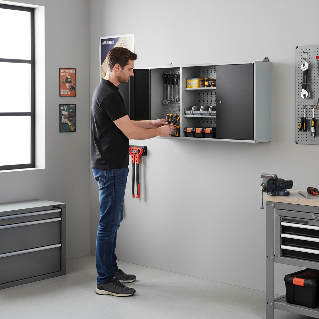 Il mobiletto in metallo con serratura è progettato per adattarsi perfettamente a qualsiasi spazio. Con dimensioni di 120x60x20 cm, è perfetto per uffici, officine o persino case. La sua struttura robusta garantisce che gli oggetti rimangano sempre organizzati e al sicuro.