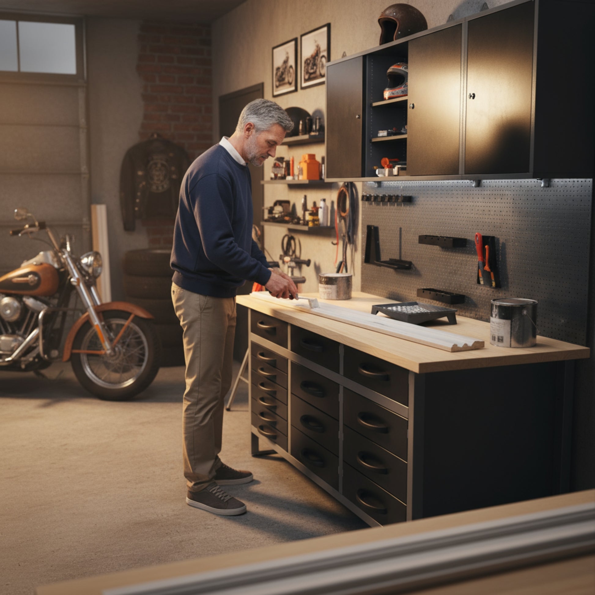 🛠️ 4 pannelli metallici perforati (60 x 40 cm) montati sul retro, insieme a ganci e staffe in metallo inclusi, per tenere tutti i tuoi attrezzi appesi, accessibili e in vista.